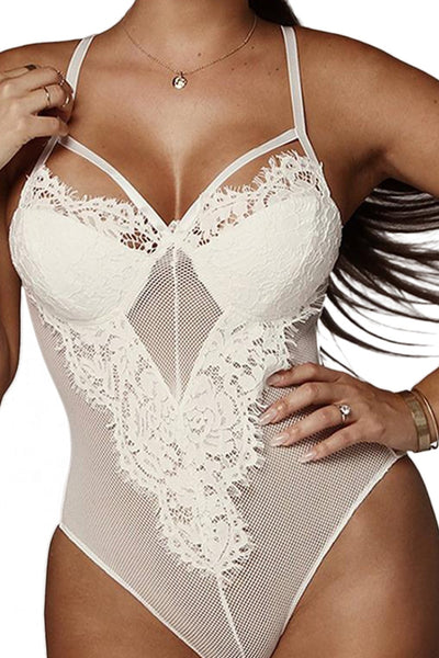 Black Sheer Eyelash Lace Teddy Bodysuit